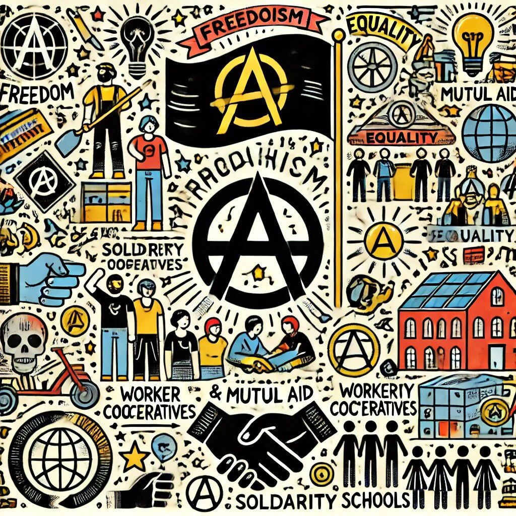 Анархизм — это социальная и политическая философия, которая отвергает любые формы принудительной власти. Основная идея анархизма заключается в создании общества, где люди живут без угнетения, иерархии и контроля, сотрудничая на основе равенства и свободы. Истоки анархизма Слово "анархизм" происходит от греческого anarchos, что означает "без властей". Хотя в современном контексте анархизм связан с движениями XIX века, его корни уходят в философию античности. Например, стоики и циники утверждали, что люди способны жить в гармонии без господства и контроля. В XIX веке анархизм стал частью рабочего движения. Мысли Пьера Жозефа Прудона, Михаила Бакунина, Петра Кропоткина и других сформировали основу этой философии. Основные принципы анархизма 1. Свобода Анархизм ставит свободу индивида выше всего. Это означает, что никто не должен подвергаться принуждению, будь то со стороны государства, корпорации или любой другой институции. 2. Равенство В анархистском обществе нет места приви