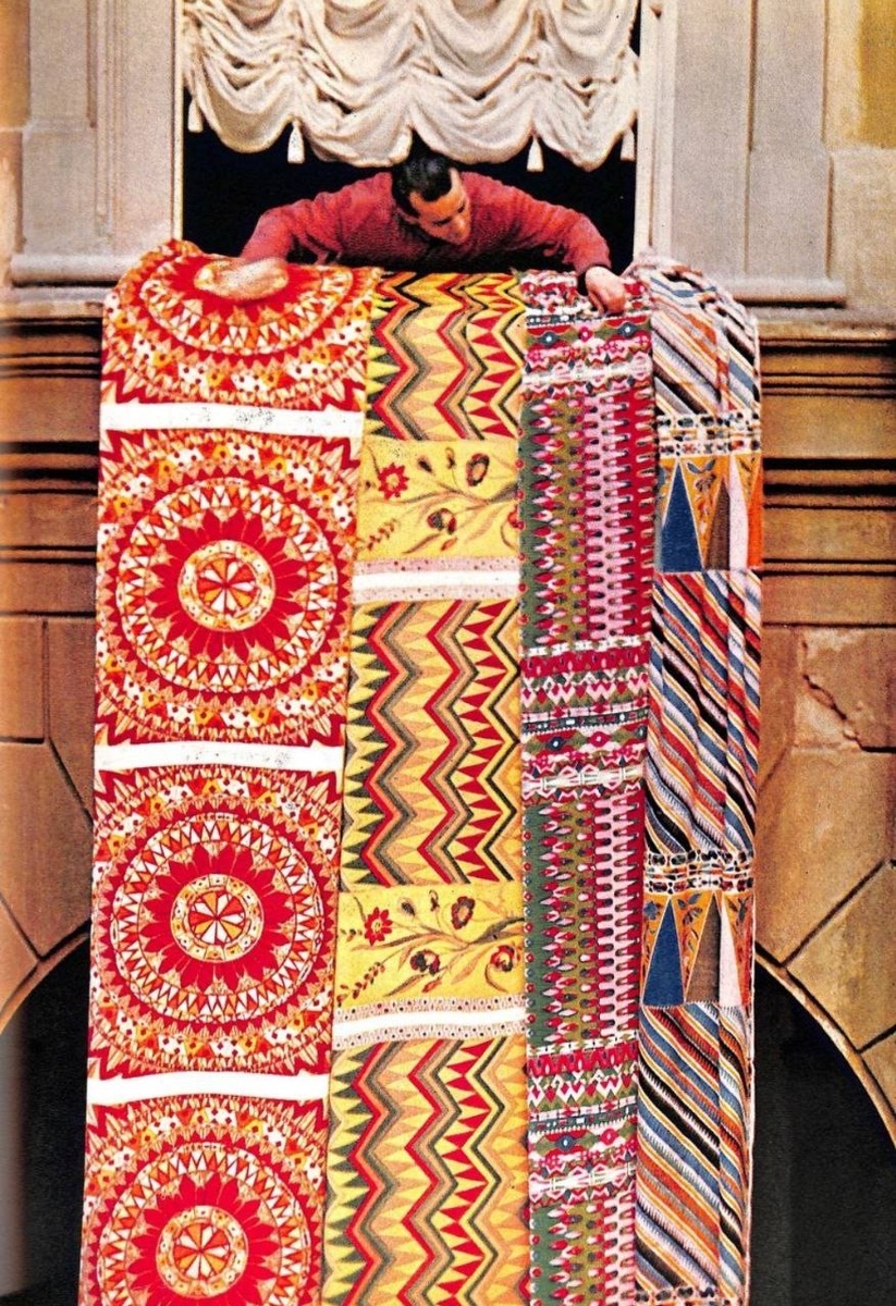 Наткнулась на старую фотографию, датированную 1968 годом, запечатлевшую Эмилио Пуччи на балконе его флорентийской квартиры. Эмилио Пуччи - итальянский модельер, творивший в 50–60-ых годах 20 века. Он начал с создания спортивной одежды, а затем перешёл к женской. Изюминкой коллекции стали шёлковые платья с набивным рисунком. Их носили такие знаменитости, как Джина Лоллобриджида, Элизабет Тейлор, Жаклин Кеннеди. Из-за перил спускаются красочные полотна шелка, развешанные для просушки после стирки. Этот кадр – не просто забавный снимок, а редкое свидетельство трудоемкого процесса создания легендарных принтов Пуччи. В те годы каждая ткань была произведением искусства, расписанным вручную, что делало её невероятно дорогой. Мы видим на фотографии не просто белье, вывешенное на солнце, а фрагмент производственного цикла, подчеркивающий эксклюзивность и ручную работу, лежащие в основе успеха дома моды. Шелка, используемые Пуччи, были, вероятно, изготовлены из высококачественного тутового шел