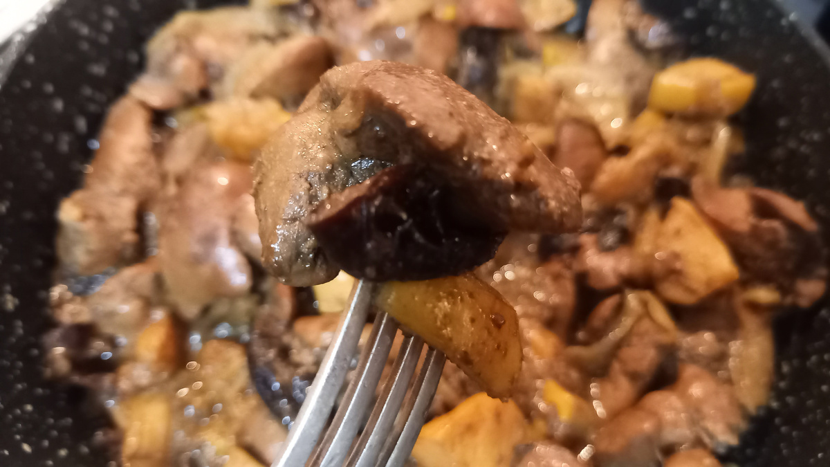 Прекрасное домашнее блюдо для ужина или обеда. Печень получается очень нежная, чуть сладковая за счет чернослива и невероятно ароматная за счет айвы. Репчатый лук спассеровать на смеси масел(я добавляю 1-2 ч.л.сахара) К луку добавить чернослив и айву, порезанные небольшими кусочками, и немного обжарить Выложить пассеровку в отдельную емкость и на этой же сковороде слегка обжарить печень. Затем к печени отправить лук, айву и чернослив Добавить соль, специи, немного воды и тушить до готовности(~20-30 минут) В итоге получается ароматнейшее горячее блюдо. А в качестве гарнира к печени можно подать рис, гречку, макароны. Тем, кто любит субпродукты(а именно печень), я советую ее так приготовить. Несложно и вкусно!👍👍👍 Другие варианты приготовления куриной печени👇 Готовьте с удовольствием! Оставайтесь с Веселым Бубликом, ведь впереди еще много вкусных и красивых рецептов👌👌👌