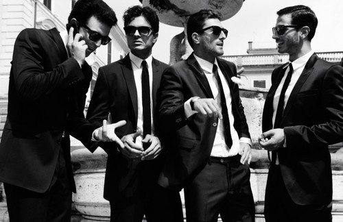 Первым входит лысый, за ним идет мужчина с квадратным подбородком. После тот, что похож на хорька, замыкает шествие Босс.