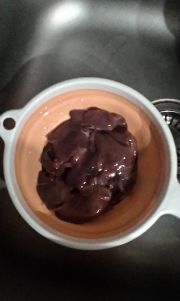 Итак, сегодня я купил печень куриную и решил приготовить паштет. Помыл печень и оставил в мойке. Пусть вода стечет. Печень порезал, убрал плёнки. Дома у меня есть мясорубка и я ею пользуюсь, поэтому лук и морковь режу крупно, а печень не измельчаю, только от плевы очищаю. Но здесь у меня мясорубки нет. Есть дешевенький блендер. Поэтому я печень порезал, но не очень мелко, а морковь с луком натер на терке, чтобы помочь блендеру все разбить в кремообразную массу без комочков. Морковь и лук перемешал с печенью и дал постоять. Пусть печень пропитается соком овощей. Сам в это время помыл и съел одну хурму. Она оказалась медовая. Печень впитала в себя сок лука. Можно жарить. Добавил на сковороду подсолнечное масло. Посолил. Добавил самую малость сахарку, буквально четверть чай ной ложки, поперчил.Печень нельзя класть на разогретую сковороду, она стреляет. Готовится куриная печень очень быстро. Кровь перестала выделяться, значит готова. Лук и морковка тоже протушились. Когда