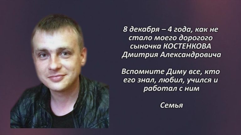 8 декабря – 4 года, как не стало моего дорогого сыночка КОСТЕНКОВА Дмитрия Александровича. Я фотографию твою прижму к груди.
