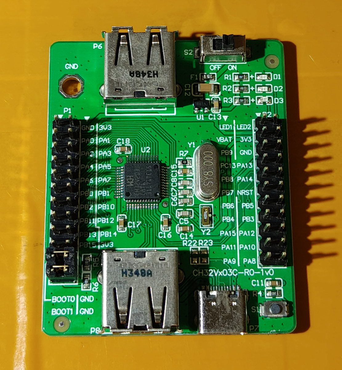Мониторинг питания: есть Ну а выглядит демонстрационная с CH32V203C8T6 так: Я стараюсь не делать из своих статей пересказ того, что уже есть. А официальная документация достаточно хорошо описывает и чип, и плату. Отмечу разве что и на этой плате тоже зажали пару 5.1к резисторов для type-c. Но, если у вас обычный USB<->Type-C провод (например, от ЗУ мобильного), то они и не пригодятся. Да, кстати, здесь Type-C уже не только для питания! Он запаралелен