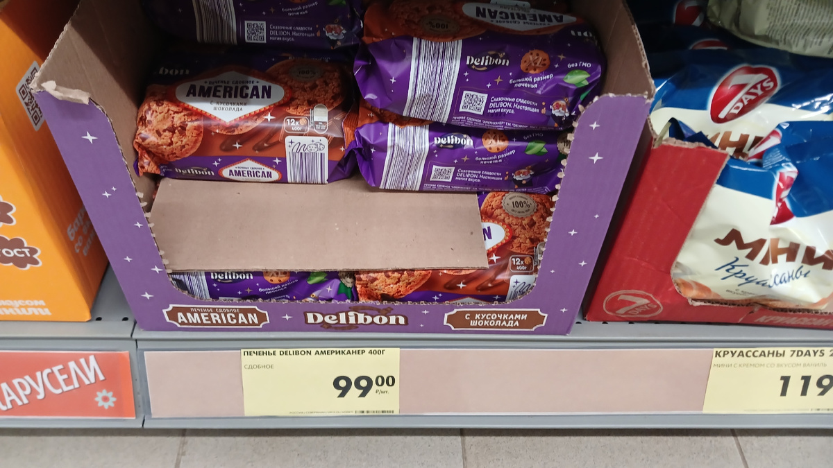 Заехали сегодня в Чижик за яйцами. Также попутно посмотрела кое-что в подарки своим к Новому году. Покажу вам на что обратила внимание и что понравилось. Печенье с шоколадными кусочками американское, большая пачка 99 руб Заметила его ещё в прошлый раз, в этот раз взяла пачку на пробу Большая упаковка печенья Орео, дети любят, взяла им в подарки новогодние Вафли Коломенское здесь по 59 руб, дешевле, чем в других магазинах. Но только один вид арахис-фундук Очень красивые подарки сладкие к Новому году от фабрики Крупской, внутри -неплохие конфеты и шоколад. Упаковка очень хороша! Стоит 500 руб. за 500 г На распродаже шоколад Boucheron. В нашем магазине уже разобрали Манго-маракуйя, но был в наличии с малиной. Цена 99 руб. Ну, думаю, щаз наберу. Почитала состав, расстроилась, взяла только 3 шт -чисто в подарки положить Появились очень крутые металлические корзины с деревянными ручками. Цена 250 руб, но выглядят дороже. Купила себе 2 шт Ещё для кухни деревянное вращающееся сервировочное