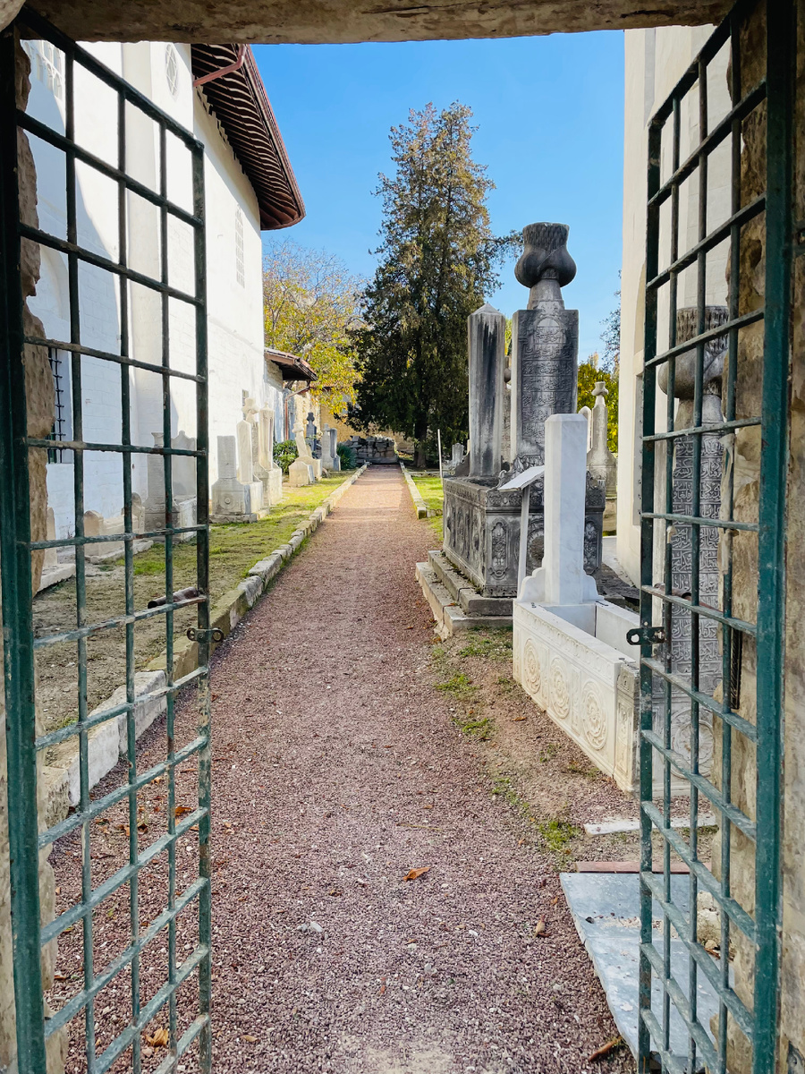Ханское кладбище в Бахчисарайском дворце представляет собой небольшой закрытый дворик с двумя калитками. В нём находятся три постройки: дюрбе (мавзолей) Девлет Герая, дюрбе Ислям Герая, а также ротонда с единственным погребением Менгли II Герая. В кладбищенском дворике за пределами мавзолеев и ротонды расположены надгробные памятники и их фрагменты. Внутри дорожек сада стоят памятники, высеченные из мрамора или известняка, за пределами мавзолеев их насчитывается 98. К сожалению, многие надгробия утеряны. Большинство мраморных монументов украшено изысканной орнаментальной резьбой: символы скорби (склонённый кипарис, роняющая плоды пальма) соседствуют здесь с символикой вечной жизни (роза, виноград, стилизованная розетка). Всякие кладбище в Крыму считалось святым местом - и тем большим благоговением были окружены усыпальницы правителей Крымского ханства. В былые времена при Ханском кладбище постоянно находились специальные служители - дюрбедар, наблюдавшие за порядком и читавшие молит