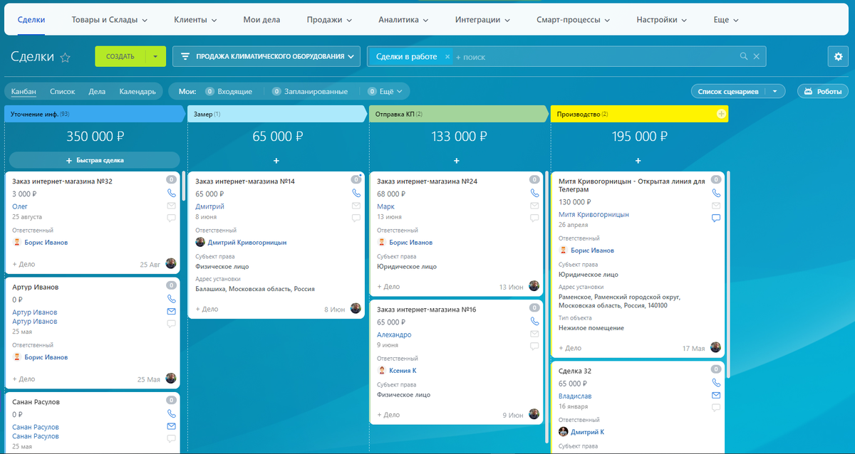 - Отслеживание сделок: каждая сделка отслеживается на всех этапах, от первого контакта до заключения контракта.