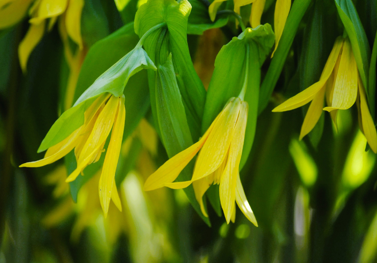 Нелегко подобрать цветущие растения для тенистых уголков сада, обычно выбор ограничивается декоративно-лиственными культурами. Но всё же есть растения, которые отлично цветут в тени и становятся эффектным акцентом тенистых композиций. Одним из таких растений является увулярия, - она покоряет своей трогательной декоративностью - колокольчатые поникающие цветки ярко-жёлтого оттенка на фоне светло-зелёных листьев становятся изысканным украшением весеннего участка. В озеленении культура встречается очень редко, потому что пока малоизвестна. Самым распространённым видом считается увулярия крупноцветковая. Этот травянистый многолетник достигает высоты в 50 см. Цветение происходит в середине-конце весны. Цветовая гамма ограничивается только жёлтыми оттенками. Цветки обладают необычной формой - словно узкие колокольчики, с глубоко рассечёнными лепестками. Лучшим местом для посадки этого растения будет участок в тени или полутени, под кронами деревьев и кустарников. Увулярия очень влаголюби