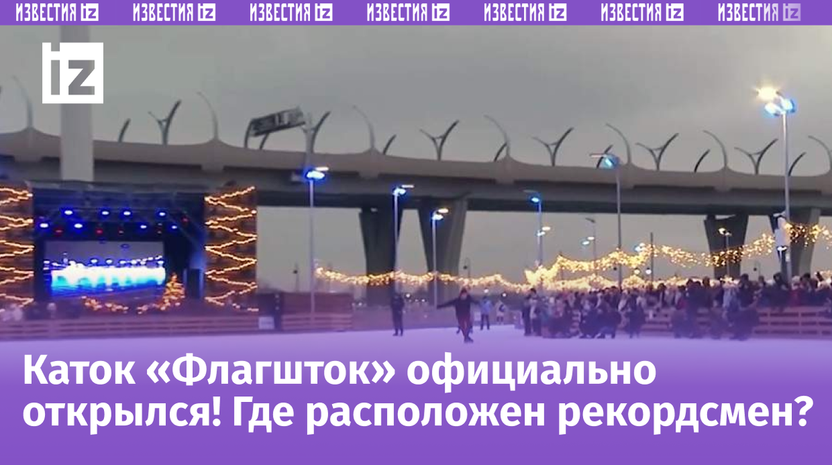 В городе Санкт-Петербург официально начал свою работу самый большой в мире каток. Кадры с открытия опубликовали «Известия». Каток называется «Флагшток». Он может вместить 2,5 тыс. людей одновременно. Его площадь составляет 28 тыс. кв. м, это эквивалентно четырем футбольным полям. В торжественной церемонии открытия приняли участие знаменитые российские фигуристы, а после них на лед вышли первые посетители. Ранее, 6 декабря, сообщилось о том, что в Москве на Красной площади начали работу ГУМ-Каток и ярмарка. На главном катке России можно встретить новогоднюю ночь. Сеанс начнется 31 декабря в 22:00 и продлится до 02:00 1 января, стоимость билета составляет 12 025 рублей.