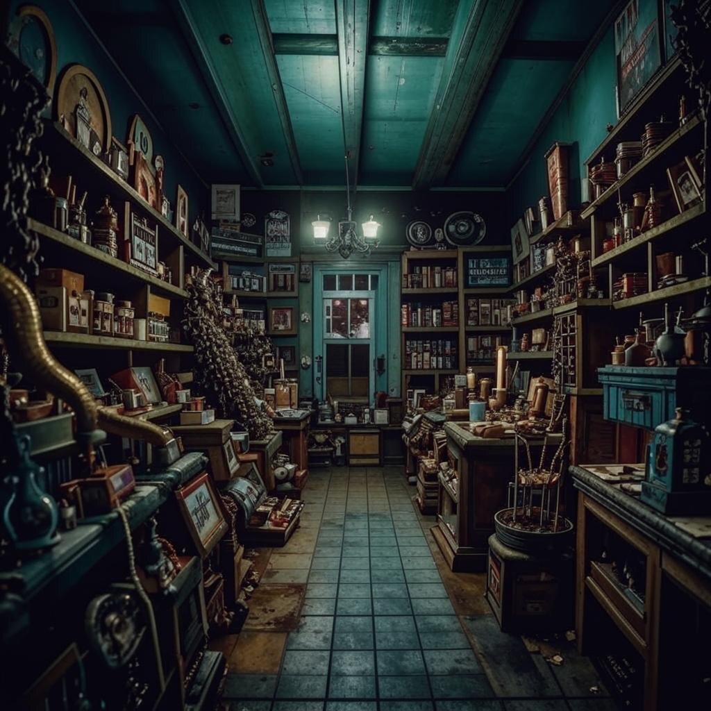 «Коллекция» Через несколько дней после исчезновения Лидии городок взбудоражили слухи. Её дом нашли пустым, а само здание покрыто странным налётом: зеркальные осколки повсюду, стены испещрены тонкими трещинами, словно кто-то пытался вырваться наружу. Никто из местных не решился войти внутрь. Тем временем магазин продолжал привлекать покупателей. Одним из них стал Матвей, коллекционер старинных книг. Он услышал о магазине от случайного знакомого, который не смог описать продавца, но уверял, что место стоит посетить. Матвей вошёл внутрь и сразу почувствовал, что что-то не так. Воздух в магазине был густым, почти осязаемым, а старинные часы на стене тикали с непостоянным ритмом, словно сбивались с хода. — Добрый день, — продавец появился из-за полки, держа в руках пыльный том в кожаном переплёте. — Я знаю, зачем вы пришли. Матвей нахмурился, но любопытство пересилило тревогу. Продавец протянул ему книгу. На обложке были выбиты странные символы, похожие на глаза, змеящиеся линии и отк