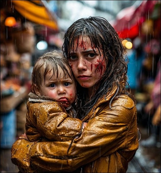 Вот к прилавку подходит молодая женщина с малышом лет трех. Она крепко прижимает мальчика к груди. На нее было страшно глядеть. Губы разбиты, лицо все в синяках, левый глаз заплыл.