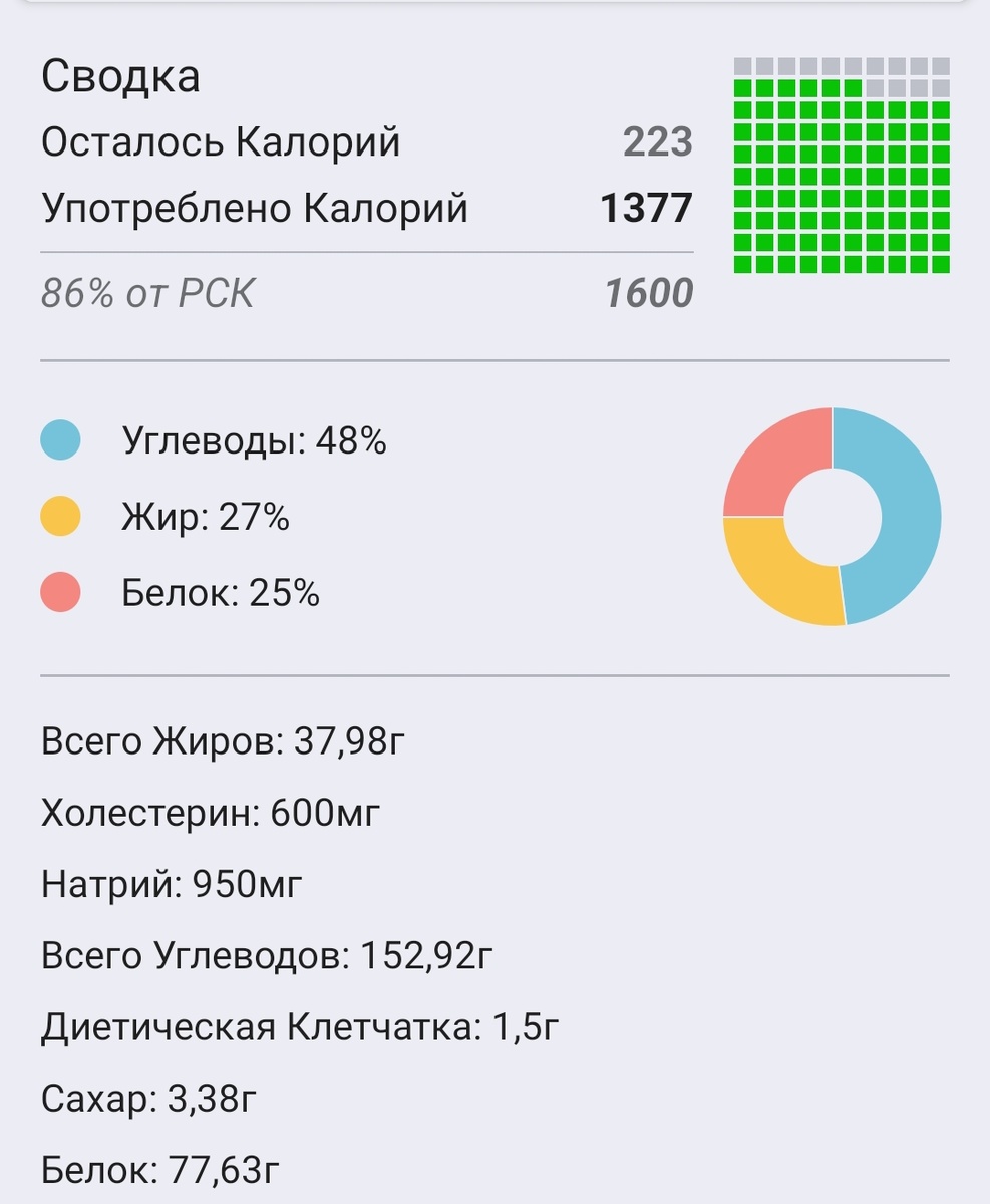 Долго думала, открывать ли новый отсчет и решила - надо. В целом день нормальный, ну если не считать двух эклеров. А я их посчитала и даже внесла в программу. И всё равно не превысила. Хорошо! Открыла для себя Шедеврум. Буду прикольными картинками иллюстрировать. Сегодня баню топила. Погрелась, массажной щёткой помассажировала. Хорошо! Ещё взвесилась утром. За неделю без изменений. Ну хоть не набрала! Завтра фитнес отменяется, поедем с младшим в травму.