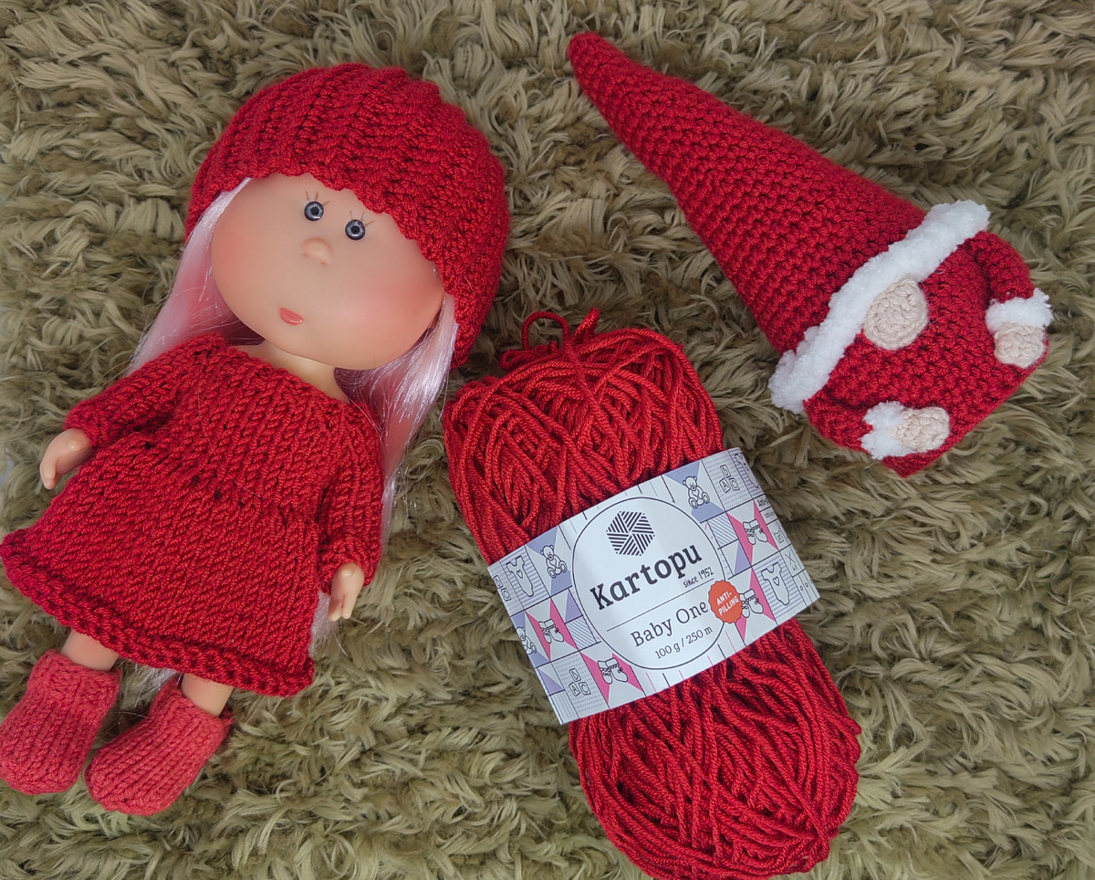 Холодно на улице куколкам без шапочки фотографироваться, вот я и решила розочке связать тёплую шапочку из новой ниточки, заодно и тест провести. Когда-то давно вязала такие шапочки паолочкам, решила немного подкорректировать описание для мини-булочек. Описание и фотографии публикации —Анна Утешева. Идею вязать такие модельки увидела у Ж.Гаспарян. Для вязания нужны: пряжа «Kaptopu Baby One», крючок 3 мм, ножницы и кукла для примерки. Петли: воздушная петля (ВП), столбик без накида (СБН), соединительный столбик (СС). Набираем цепочку из 20 ВП и 1 ВП для подъема. 1 ряд: со второй петли от крючка вяжем по 1 СБН в каждую петлю цепочки. В конце ряда будет 20 СБН. Здесь и в каждом последующем ряду делаем 1 ВПП и вязание поворачиваем, а первый столбик следующих рядов всегда вяжем в ту же петлю основания. 2 ряд: вводим крючок за задние стенки петель (та часть полупетли, что дальше от вас. По лицевой стороне будет образовываться рубчик) и повторяем предыдущий ряд. Все последующие ряды вяжем