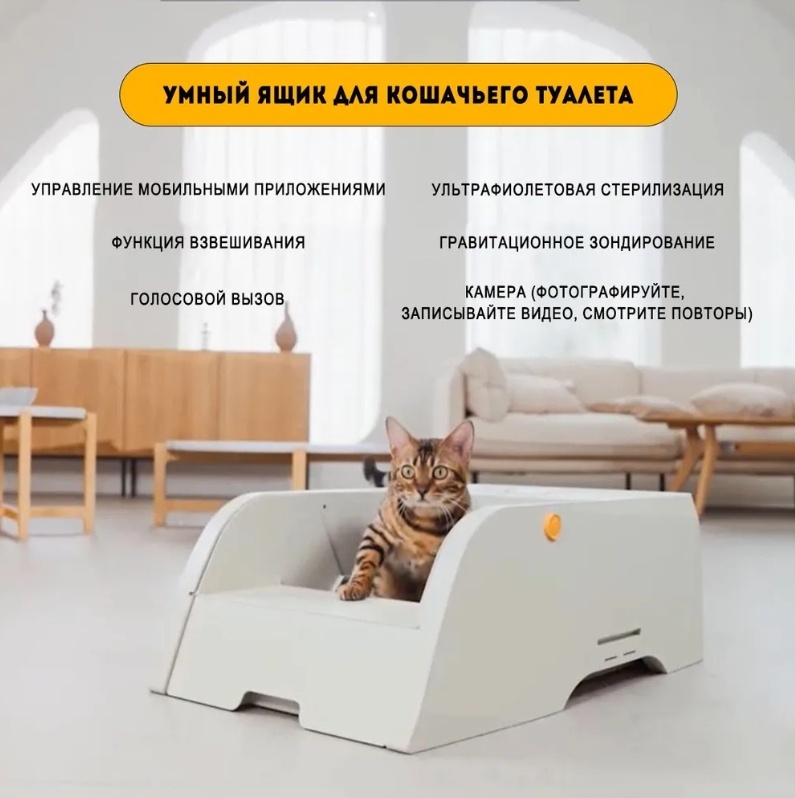 Недавно на рынке автоматических кошачьих туалетов появилась новая модель с очень длинным названием: «Автоматический лоток туалет для кошек, большой умный лоток для кошачьего туалета, умный ящик для кошачьего туалета».