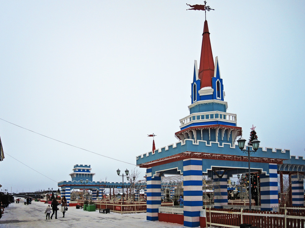 Продолжение рассказа об однодневной прогулке по новогодней Казани в середине декабря 2018 года. Прогуливаясь по Казани, конечно, невозможно не зайти в кремль и потом не спуститься на набережную реки Казанки. В кремле мы побываем позже, вечером. А вот по набережной пройдёмся и днём тоже. В 2018 году здесь устроили целый сказочный городок со своими крепостной стеной и башнями. Основную часть променада традиционно занимает каток. На входе туда в тот раз стояла праздничная фоторамка. Оформление свободной от катка части. Конечно, ёлочки. Различные световые фигуры. И самые разнообразные инсталляции и арт-объекты. По ещё одной казанской традиции, довольно странной, часть праздничного оформления спрятана под платный вход. Не знаю, сохранилось ли это до сих пор. Но лично я в такие игры не играю принципиально. Поэтому отправляюсь посмотреть, как украшена территория около кафе. Продолжение прогулки будет чуть позже. Ниже можно найти ссылки на другие подборки с новогодней тематикой.