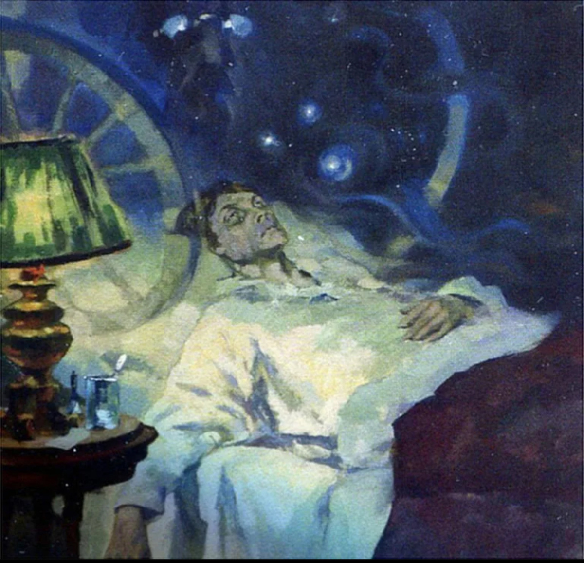 Сон навеян Алексею событиями, происходящими в Городе. Он не может оставаться равнодушным, видя, как отступают немцы, гетман, слыша вести о наступлении петлюровцев. В то же время, Турбин находится под впечатлением от героизма Жилина, Най-Турса. Всё это нашло место в сновидении героя. Начинается эпизод тем, что Алексей погружается в сон, видит улицы родного Города, наблюдает за хаосом, который происходит вокруг. Герой встречает Най-Турса, а потомвнезапно попадает в рай. Финал эпизода прозаический: герой просыпается, глаза его наполнены слезами. В центре описываемых событий проблемы веры в Бога, жизни и смерти; чести. Алексей признается, что не верил в то, что рай существует, но увиденное меняет его взгляды на жизнь после смерти. Узнает Турбин и то, что перед Богом все равны – и белые, и большевики, и «петлюровцы» – врата рая открыты для всех, кто соблюдает законы чести. Главным участником эпизода является Алексей Турбин, так как именно его подсознание порождает сон о рае Господнем.