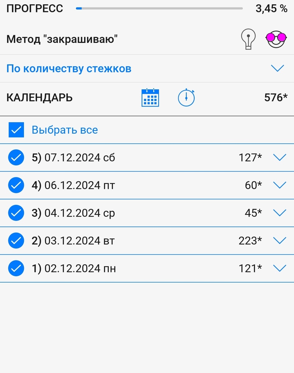 Меня зовут Таня, и я приветствую всех, кто заглянул на мой канал, где я пишу о моей жизни и своем увлечении вышивкой крестиком! Ну что ж. Прошли несколько вечеров (или ночей, судя по отчëту) с моим новым набором «Наступающий кот», и я готова поделиться первыми результатами и впечатлениями. Да, как-то мало... Но и времени у меня было мало, по вечерам час максимум. Как видно из таблички, два дня вообще удавалось только по одной ниточке вышивать. Печально, потому что за зиму, я хотела бы этот процесс закончить. Из радостных моментов, я приноровилась вышивать на этой основе (Мурано). Напомню, мне было мелко, и переплетения сливались. Поняла, что вышивать надо без очков, у меня они для дали (а видимо уже возраст, и пришёл незаметно плюс), неудобно только смотреть на схему, так как приходится её максимально увеличивать, чтобы что-то увидеть. Но ошибок больше не делаю, ну и далеко, как на аиде, стараюсь не разбредаться, чтобы не ошибиться, так как я вышиваю всегда без разметки. Что еще ск
