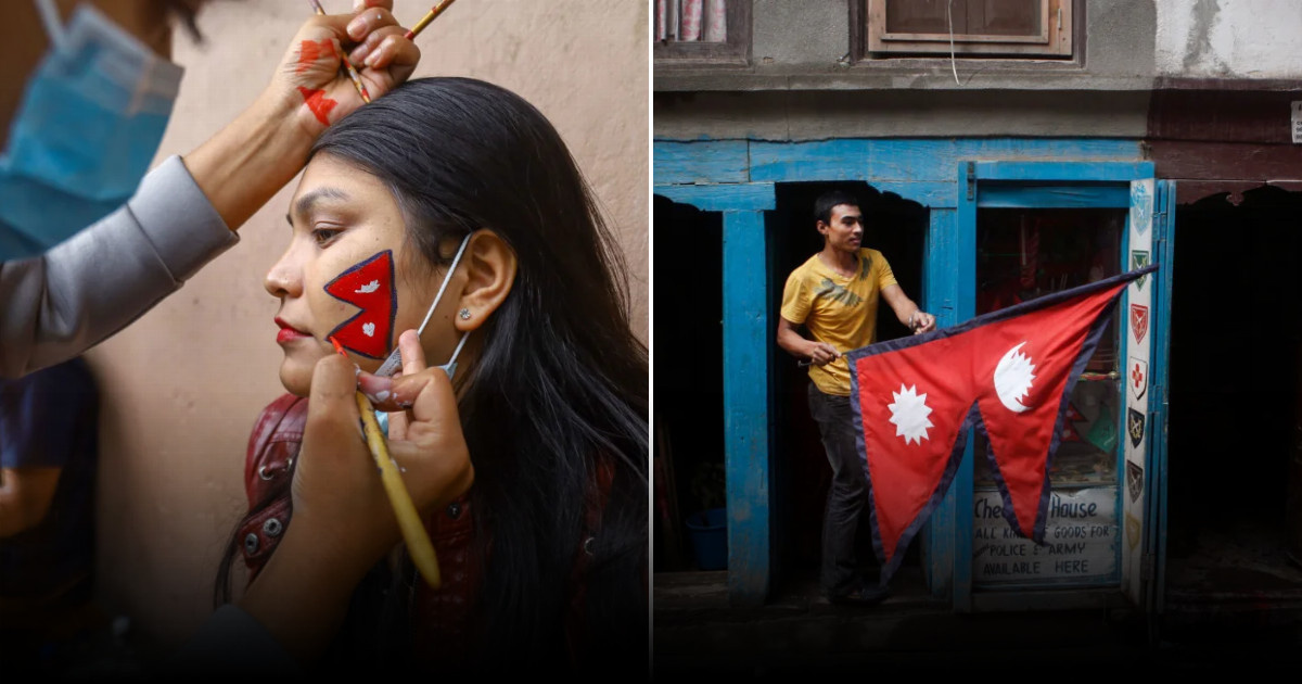 Вопрос о национальных флагах — это всегда интересное занятие в барной викторине: каков единственный национальный флаг в мире, который не имеет квадратной или прямоугольной формы? Правильный ответ — Непал. Однако помимо его уникальной формы, флаг Непала окутан множеством тайн. Разные люди видят в этом флаге символы, отражающие движение небес, современное создание нации, наследие буддизма и индуизма, азиатскую гордость, политические манёвры или даже сочетание всего вышеизложенного. Флаг Непала легко узнать среди других: он состоит из двух красных равнобедренных треугольников, направленных вправо, с темно-синей окантовкой и двумя белыми фигурами, представляющими солнце (в нижней части) и луну (в верхней). «Эта форма, с одним и двумя флажками не является уникальной для Непала. У неё есть глубокие корни в Южной Азии и Индийском субконтиненте», — отмечает Санджог Рупакхети, профессор истории в Колледже Святого Креста в Массачусетсе и уроженец Непала. «В школе нас учили, что солнце и луна пре