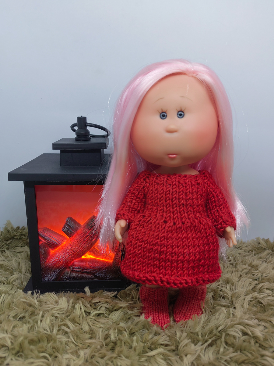 Всем творческим большой привет! Предлагаю продолжить утеплять наших мини-булочек и связать им спицами тёпленькие платьица. Носочки вязали здесь, шапочку — здесь. Автор описания я, Анна Утешева. Разрешаю делиться этим описанием только репостом. Материалы и инструменты: пряжа «Kaptopu Baby One» спицы №2, пара пришивных кнопок 5-7 мм, крючок 2 мм (для сшивания рукава). Петли: ЛП – лицевая петля, ИП – изнаночная петля, К – кромочная петля, Н - накид. Петли провязываю за переднюю стенку (классическим способом), а при вязании в прямом и обратном направлении первую петлю в ряду снимаю, последнюю провязываю лицевой независимо от ряда. Накиды можно вязать с дырочками или без, для этого в изнаночном ряду провязываю их либо за переднюю, либо за заднюю стенку. Набрать на спицы 30 петель нитью первого цвета. 1-2 ряд: К, 2 ЛП, резинка 1*1, 2 ЛП, К (30); 3 ряд: К, 2 ЛП, 2 ЛП, НЛН, 4 ЛП, НЛН, 8 ЛП, НЛН, 4 ЛП, НЛН, 2 ЛП, 2 ЛП, К (38); 4 ряд: К, 2 ЛП, 32 ИП, 2 ЛП, К (38); 5 ряд: К, 2 ЛП, 3 ЛП, НЛН, 6