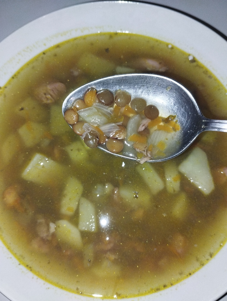 Вкусненько и быстро. Всё как я люблю) И как любят многие хозяйки, когда нет времени стоять у плиты. А главное очень полезно! Зелёная чечевица: В первую очередь ставим вариться чечевицу. Пока она готовиться, подготовим остальные ингридиенты. Сделаем зажарку. Чистим, моём и режем картофель. И копчёную курицу. Когда чечевица дойдёт до полуготовности, отправляем в кастрюлю картофель, курицу и зажарку. Солим в самом конце по вкусу. Накрываем крышкой и даём постоять минут 15. Подавать лучше со сметаной. Вкусный и очень полезный суп готов! Приятного аппетита! 🤗