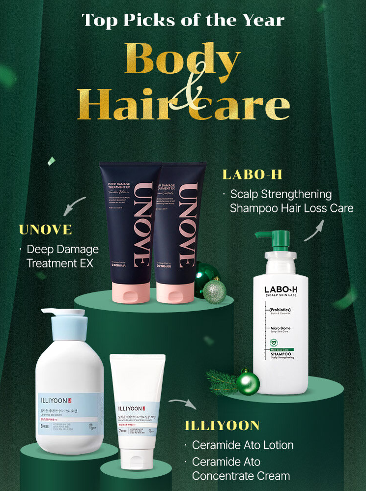 Сегодня завершающая серия постов о лучших товарах 2024 по версии корейской сети магазинов Olive Young. В ней мы посмотрим на средства для волос и тела. Для вашего удобства я буду давать ссылки на эти товары (если таковые имеются) в наших магазинах. ШАМПУНИ 1. Labo-H – Hair Loss Relief Shampoo [Scalp Strengthening] 2. Unove – Deep Damage Repair Shampoo 3. Dr.FORHAIR – Folligen Shampoo 4. Выбор специалиста - Rausch – Coltsfoot Anti-Dandruff Shampo УХОД ЗА ВОЛОСАМИ 1. Unove – Deep Damage Treatment EX 2. Mise-en-scène – Perfect Serum Original 3. Growus – Damage Therapy No Wash Treatment 4. Vivelab – Revive Therapy Hair Scalp & Brow Ampoule КРАСКА ДЛЯ ВОЛОС 1. Mise-En-Scène – Hello!! Cream Hair Colour [#1CB Cool Black] 2. Etude – Pang Pang Hair Shadow [#01 Dark Brown] 3. L’Oréal – Excellence Crème [#3 Soft Black] 4. Выбор специалиста - Daleaf – Glam Finished Hard Spray МОЛОЧКО ДЛЯ ТЕЛА 1. Illiyoon – Ceramide Ato Lotion 2. Derma:B – Daily Moisture Body Lotion 3. Bioderma – Atoderm Cr