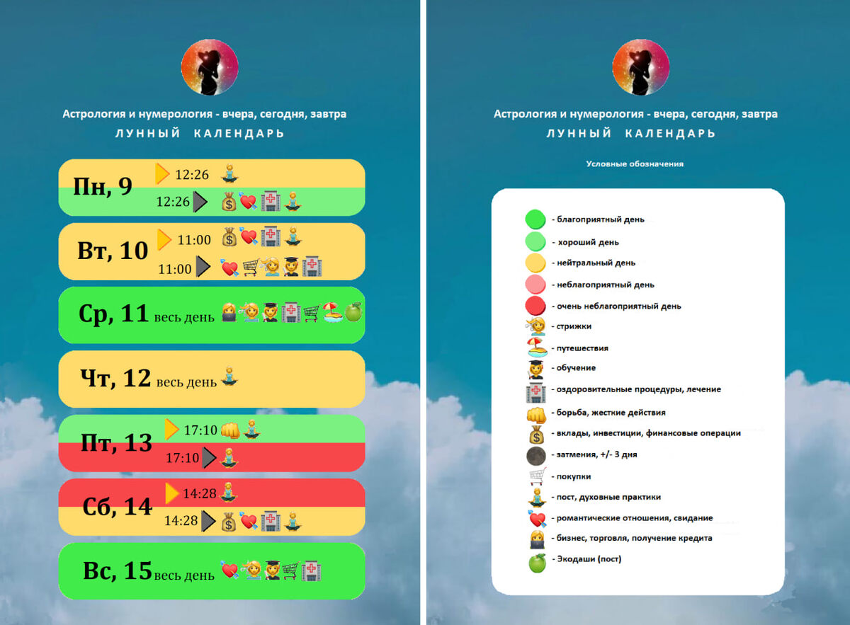 ✨10 декабря, вторник, 10 л.с. Сделайте вторник на этой неделе изобильным на дела и планы - вы с легкостью реализуете то, что задумали. Во всём зеленый свет кроме путешествий, от них пока лучше отказаться. ✨11 декабря, среда, 11 л.с. 11-е число одиннадцатых лунных суток - замечательный день, чтобы начать что-то новое. Обновить прическу или принести в дом новую вещь, тоже хороший вариант. Не забывайте, что сегодня пост Экадаши.