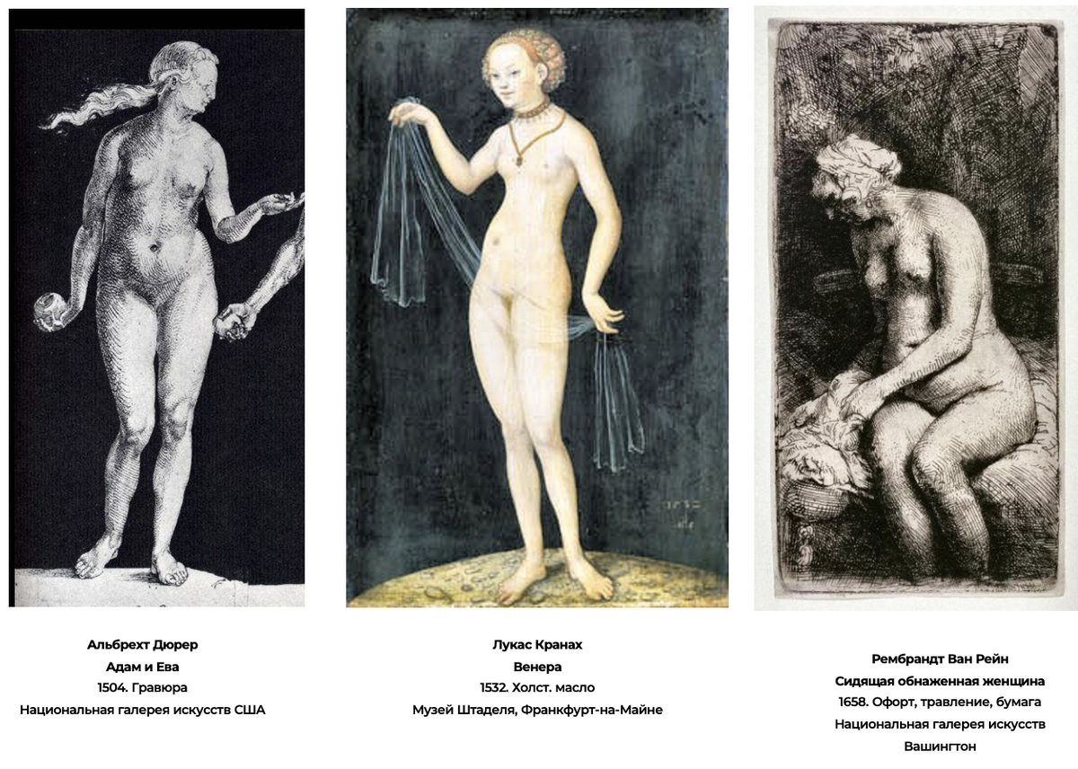 Дюрер и Кранах демонстрируют линейный стиль, Рембрандт же живописный.