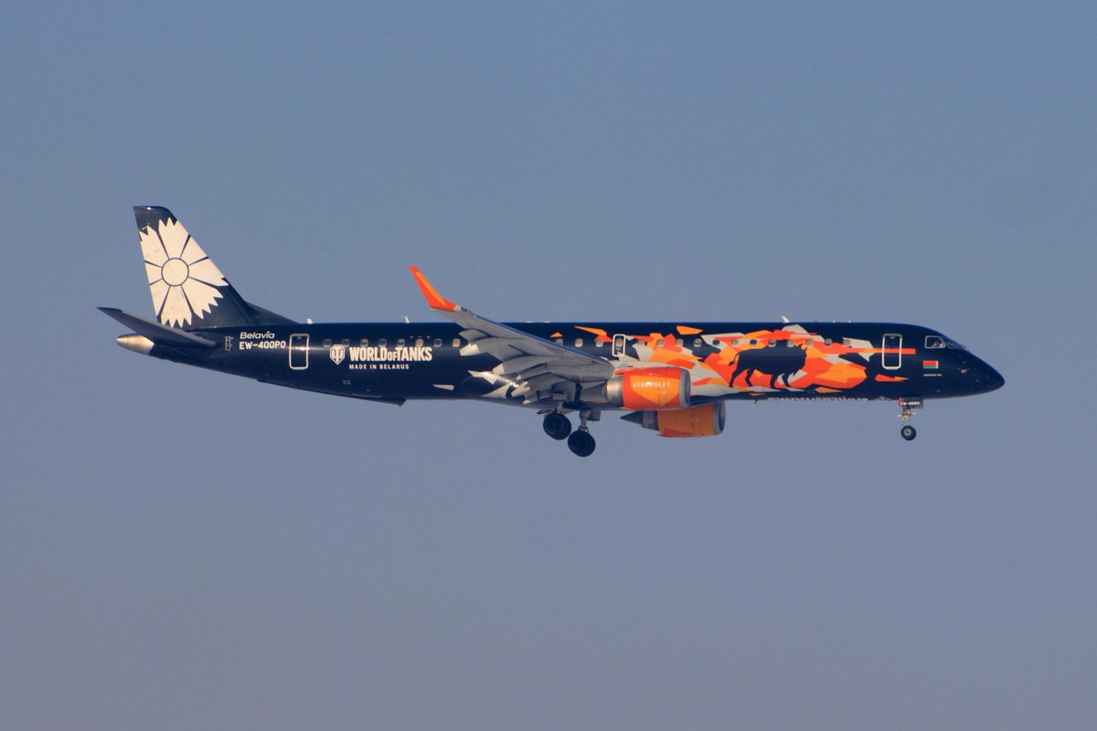 Событие, которое нельзя было пропустить! Чёрный красавчик - в Омске! Впервые в Омск прилетел #танколет "Белавиа". Лайнер доставил в Омск из Екатеринбурга на игру с "Авангардом" хоккеистов Динамо (Минск). Гости уступили в мачте хозяевам, "Авангард" проходит в плейофф. А минчане полетели в Астану играть с Барысом. EW-400PO - Embraer ERJ-195LR (ERJ-190-200 LR) - Belavia Самолет поступил весной 2014, а в декабре 2018 получил ливрею белорусской компьютерной игры "World of Tanks" и инвертированный василек - символ компании на киле, став вторым #танколетом после Боинга-737. Мне самолет также попался впервые. Благодарю за пару кадров с посадки @shummerk55
