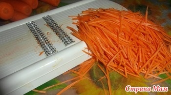 Овощи терла на терках, для корейской моркови. А капусту на такой. Маринад, точно не соблюдала пропорции: