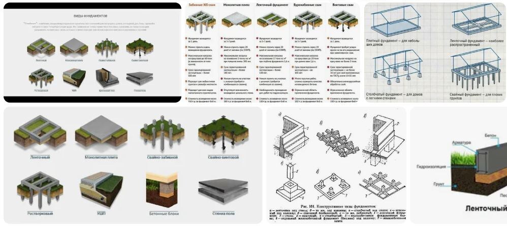 В этой статье мы рассмотрим некоторые существующие виды фундамента, а также их использование. Выбирать тип фундамента необходимо исходя из непосредственно типа грунта и особенностей будущей постройки здания.