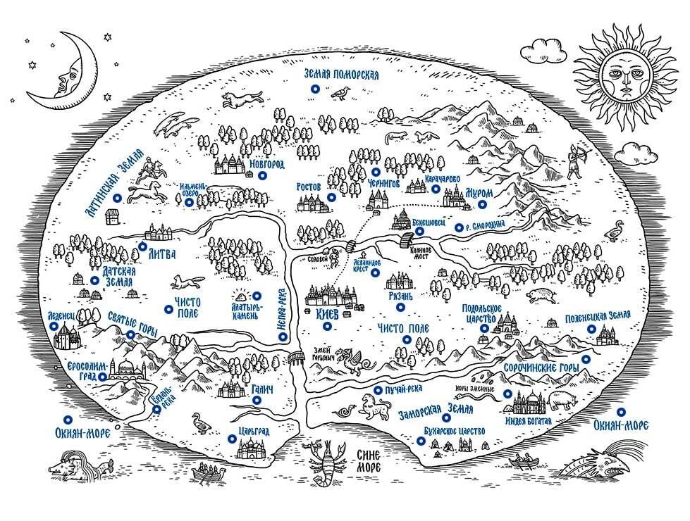 Действие героических былин всегда как-то привязано к Киеву – даже если основное действие происходит в каком-то другом месте, оно либо начинается в Киеве, либо туда направляется кто-то из героев. При этом былинный Киев с реальным иногда вообще имеет мало общего. Например, в Чернигов из Киева и обратно некоторые герои отправляются морем, а из Киева в Царьград – по Волге.