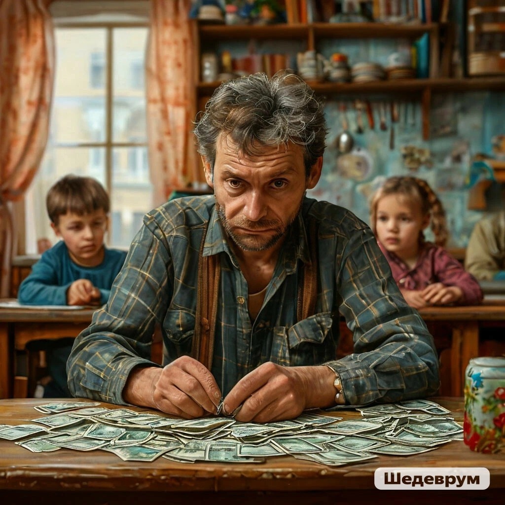 И вот этот мужчина вынужден работать сам, кормить всю семью. Не могу сказать, что он с этой ролью совсем не справляется - на еду, коммунальные услуги, одежду и самые необходимые школьные расходы хватает...На этом все. Естественно, ему бы хотелось больше - хоть раз в год семью в отпуск свозить. Но на такие излишества уже не хватает.
