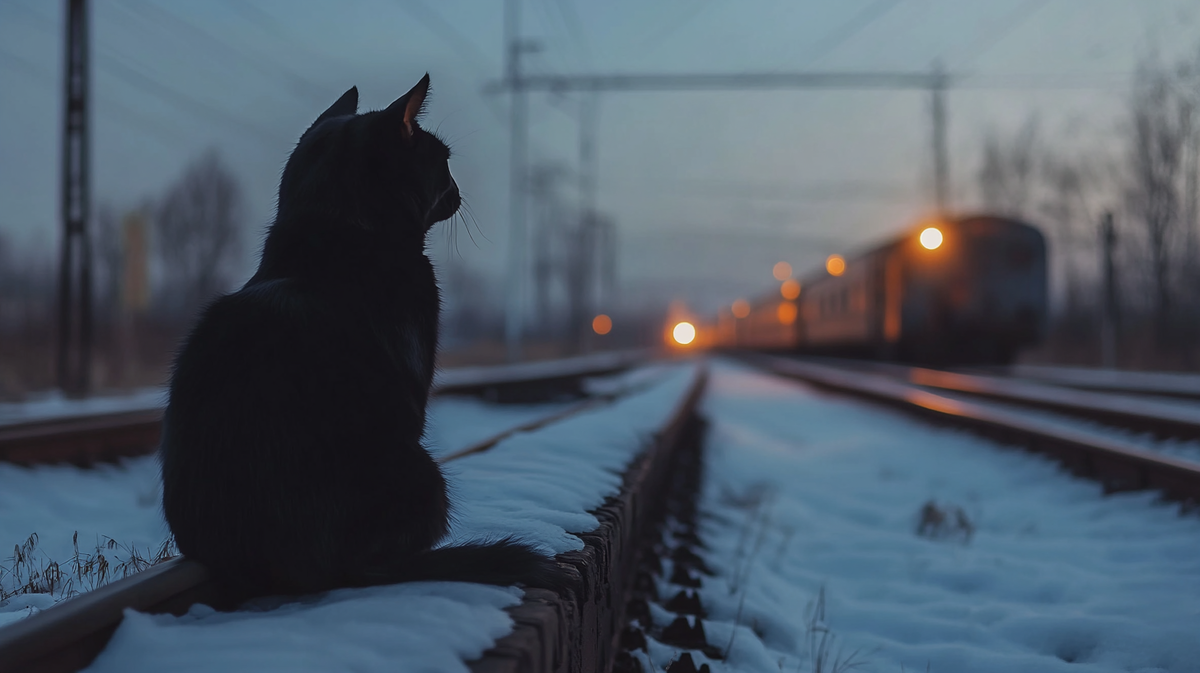 У самого края, где доски настила встречались с пустотой, сидела черная кошка с белой звездочкой на груди. Её янтарные глаза были устремлены вдаль, туда, где рельсы сливались в одну точку на горизонте.