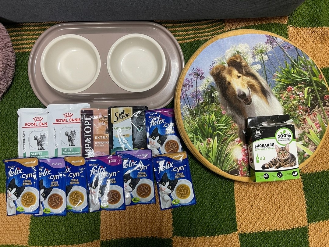 От всей души благодарим за помощь приюту: Лилию за одеяло, ветошь, влажный корм, мисочки, лежаночку, капли от паразитов (фото №1 и №2), Анжелику за антибиотик Синуксол (фото №3), Галину за препарат Экспресс успокоин (фото №4), Дарью за пеленочки и препарат Фебтал (фото №5).