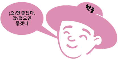 Глагол / Прилагательное- (으)면 좋겠다 - Используется для выражения желания или надежды, которые не были реализованы, но реалистичны - Я желаю..... / Я надеюсь....