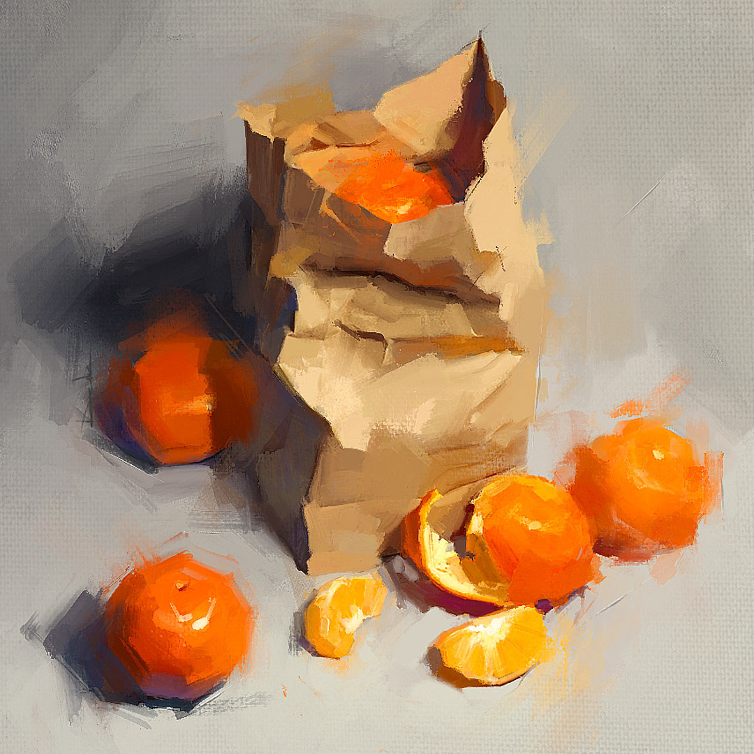 Этюд «Мандаринки» — мастер-класс живописи маслом в ближайшее воскресенье. • 15 декабря, воскресенье • Начало в 15:00 • Продолжительность 4 часа • Москва, Адмирала Макарова, 8 Покажу, как передать мятую бумагу, как писать от пятна и не прикасаться к мастихину. Заодно поиграем с оттенками между желтым и красным. Кстати мандаринки будут натуральные, съедобные. Подробнее...