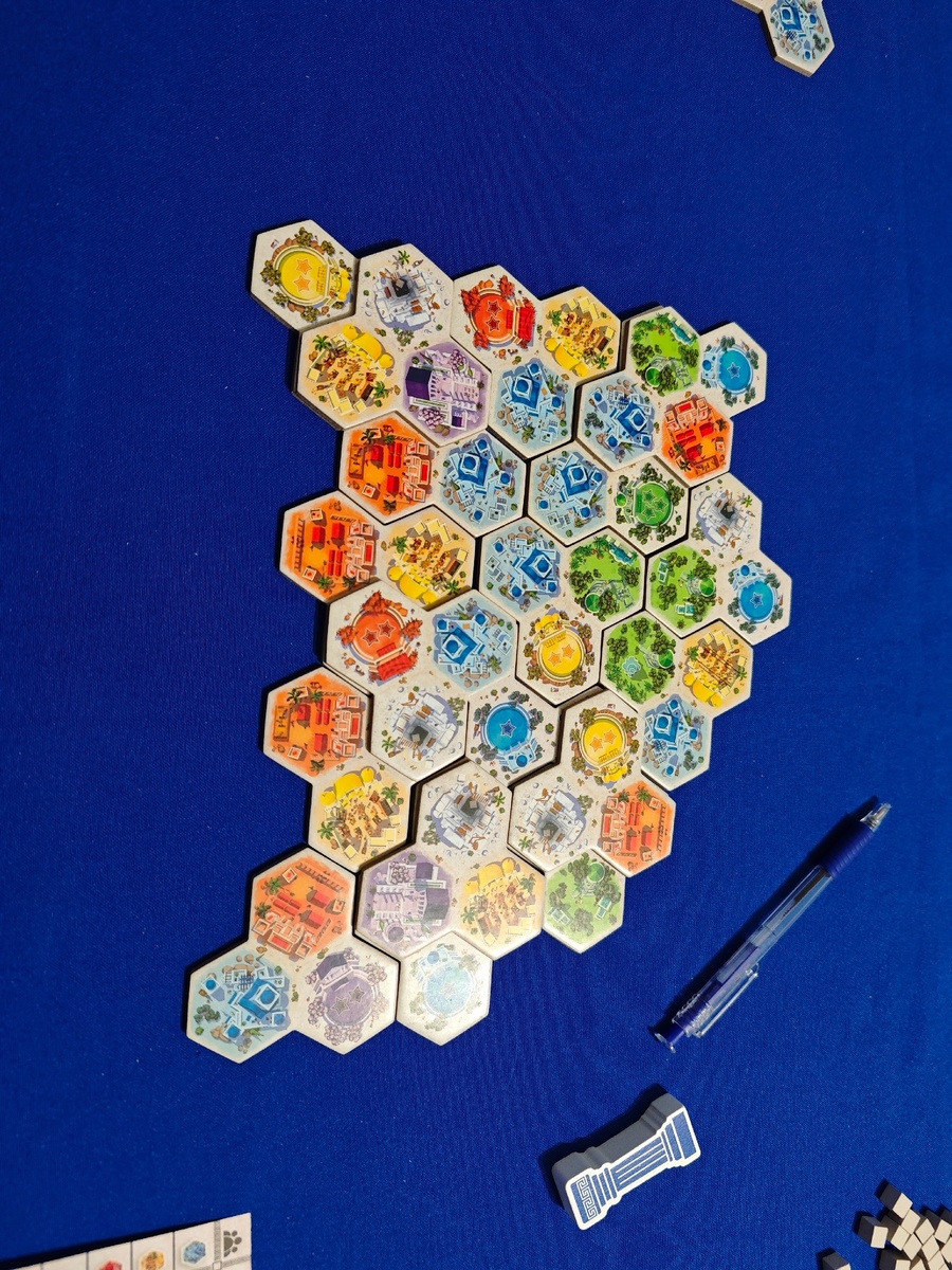 И завершили наши выходные мы настольной игрой Акрополис. Если вы не читали первые две части, то первую можно почитать здесь, а вторую здесь. Оля предложила "верблюдов" (это она так Пять племен называет), но я не нашел коробку (все обыскал, видимо, в каком-то пакете лежит), поэтому мы решили вместо востока поехать в Грецию. Обзор игры можно почитать здесь, а наш летсплей на двоих со всеми правилами можно посмотреть здесь. Я как всегда решил пойти в желтые и красные районы. Я забрал кучу желтых районов + почти все желтые площади (Оле досталась только одна). Она же набирала ПО на синих и фиолетовых районах (до сих пор считаю фиолетовые районы самыми бесполезными). Города у нас получились максимум второго уровня, над третьим никто не заморачивался. Победил я со счетом 143:108. Акрополис, как многие из вас знают, мой любимый абстракт. Теперь, конечно, Города стремительно к нему приближаются, так что насчет "ТОП 1" я бы уже не был так уверен. Оле игра тоже нравится, она готова в нее играть