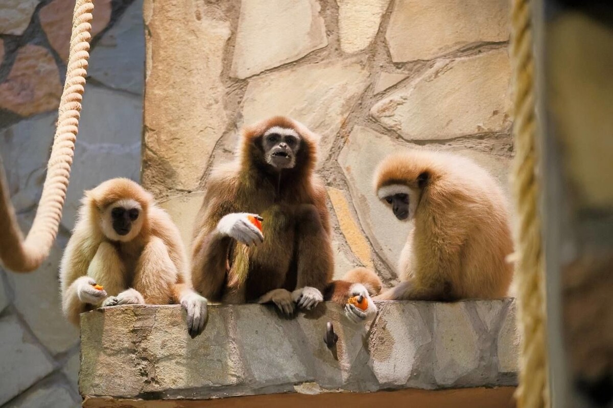 Белорукие гиббоны попали в кадр сотрудников Ленинградского зоопарка