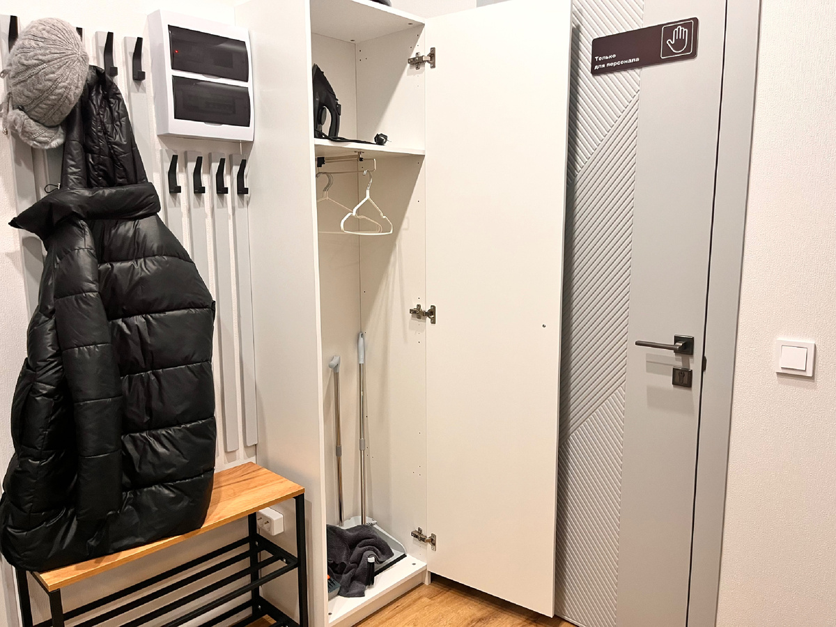 Записки Евгении... как же это оказалось удобно... Недавно мы сделали ремонт в однокомнатной квартире. Я была главным прорабом, следила за всеми стадиями, находила рабочих и придумала дизайн. Сейчас мы приступили к ремонту нашей второй однокомнатной квартиры, теперь я в раздумьях, как что лучше сделать и там. Не все в первом ремонте оказалось удачным, что-то я решила изменить (об этом писала в другой своей статье - ЧИТАТЬ ТУТ), но есть несколько решений, которые я обязательно повторю в новом ремонте. Это действительно оказалось удобным. В прихожей мы поставили небольшой шкаф, который используется для хозяйственных нужд. Там мы храним швабру, половую тряпку, щетку с совком, утюг, ролик для одежды, т.е. все то, что может понадобиться нашим гостям. Я стараюсь каждой вещи заранее придумать место для хранения, чтобы она потом не "болталась" по дому и не создавала визуального шума и беспорядка. С этой же целью я намеренно оставила пространство между шкафом и стеной (см. пункт ниже). Можно