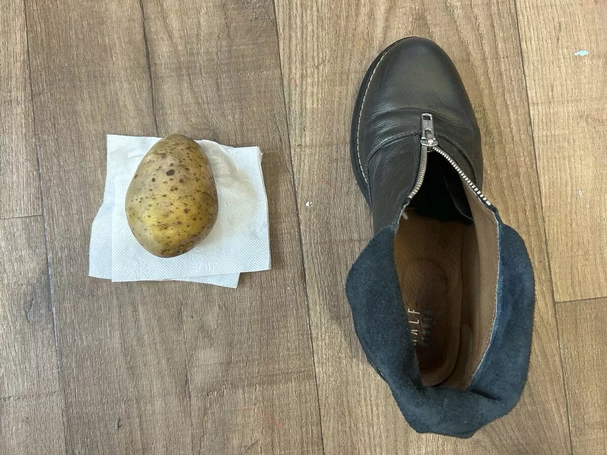 За счёт влаги в картофеле кожа растягивается. К утру новая обувь должна подойти по ноге.