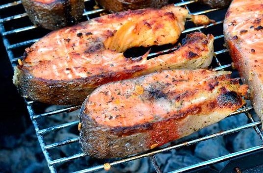 Рецепт с соусом. Подготовленную рыбину режим на стейки. Обжариваем их с двух сторон до полуготовности.