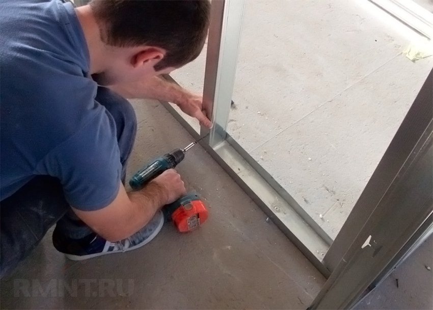 - Сделайте нарезку стоечных профилей нужной длины, в полость профиля заложите брусок для усиления.