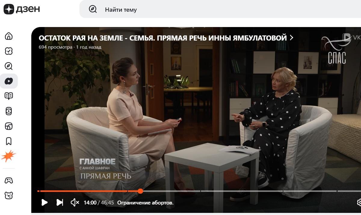 ПРЯМАЯ РЕЧЬ ИННЫ ЯМБУЛАТОВОЙ и не хочется даже комментировать ничего, слушая ошеломляющую информацию о демографической ситуации в нашей стране. Флудить не буду, рекомендую смотреть видео на канале Дзен! Цитата: Адекватная оценка на сегодня уже есть. Цитата: Нас же загоняют в аморализм. Цитата: Если закон безнравственный – это плохой закон. (В.В.Путин) Цитата: В православной молитве мы беременную называют «непраздной». Цитата: А у неё разве не особый статус? Цитата: Хочется спросить: у нас что-то с женщинами не так? Цитата: Она вынуждена выходить работать. Цитата: Водораздел прошёл по этому вопросу. Цитата: Зло злом то не назвали: «аборт – операция» Цитата: Это не зуб вырвать - это тяжёлая физическая и психологическая травма. Цитата: Природа бизнеса такова, чтобы «этого» было больше. Цитата: Хотя бы, скажите, что это антисоциальное явление. Цитата: Страна, которая приносит в жертву 500 тысяч детей в год, победы, я не уверена, что будет достойна и достигнет её. Цитата: Бедность, болезнь