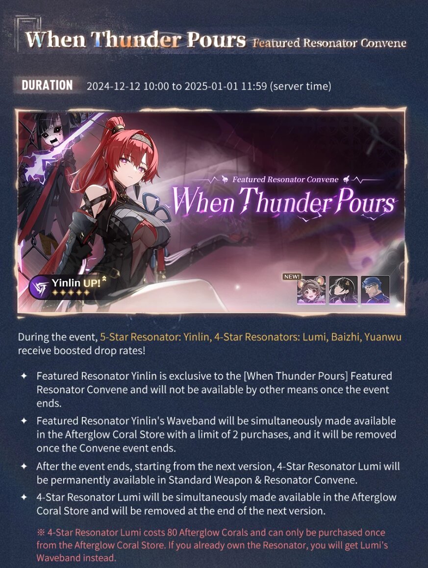 Разработчики Wuthering Waves подготовили для нас пост с информацией о грядущих ивентах второй половины обновления 1.4. Так Kuro Games напомнили нам о том, что следующими баннерами в игре будут рераны баннеров Инь Лин и Сянли Яо. В баннерах этих персонажей также будет присутствовать 4-звездочная Люми, но, к счастью, приносить крутки в жертву рандому для ее получения не придется — девушка также появится в магазине рядом с Ю Ху. Цена вопроса — 80 кораллов.