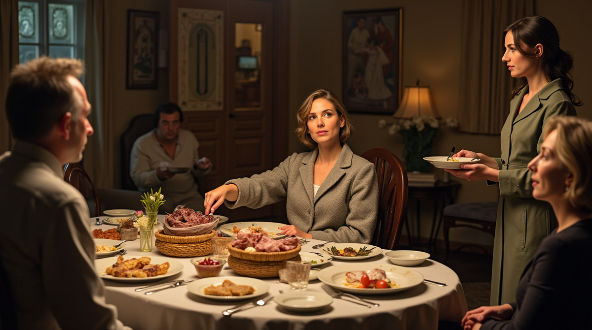 Гости старательно делали вид, что не замечают этих намёков, но по их лицам было видно — всем неловко. Только Марина продолжала улыбаться, чувствуя, как внутри растёт ком раздражения. "Господи, — думала она, — ну почему я не могу просто сказать "нет"?"