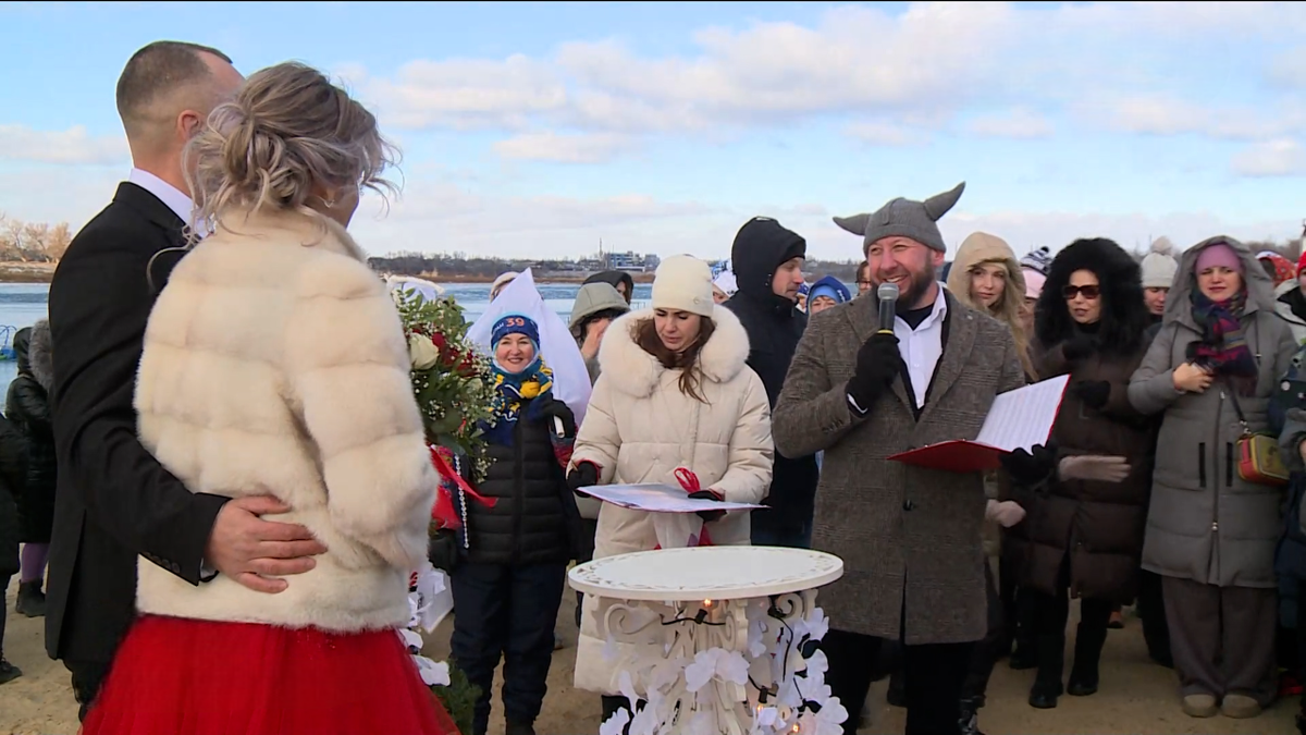 В Волжском состоялся пятый спортивный фестиваль закаливания и здорового образа жизни. «Моржеран» объединил более 100 участников из разных уголков страны. Одним из главных событий этого дня стала свадебная церемония. Влюбленные обменялись кольцами и окунулись в ледяную воду. На берегу Ахтубы началась история семьи Глуховых. Этот день Андрей и Юлия запомнят на всю жизнь. Супруги закрепили союз не только клятвами и обручальными кольцами, но и купанием в ледяной воде. Все в лучших традициях настоящих «моржей». Молодожены познакомились в клубе любителей закаливания. Общее увлечение подарило судьбоносную встречу. «Ощущения просто замечательные. Сейчас уже не холодно. Знаете, нас греют наши моржовые сердца», – говорят молодожены. «У нас предложение руки и сердца было на первом прыжке с парашюта Юли, и мы не стали понижать планку и решили на «Моржеране» во льду искупаться и зарегистрировать свой брак», – рассказывает Андрей Глухов. Регистрация брака открывает зимнее спортивное событие под назв