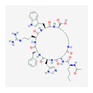 Последовательность: Ac-Nle-Asp(1)-His-D-Phe-Arg-Trp-Lys(1)