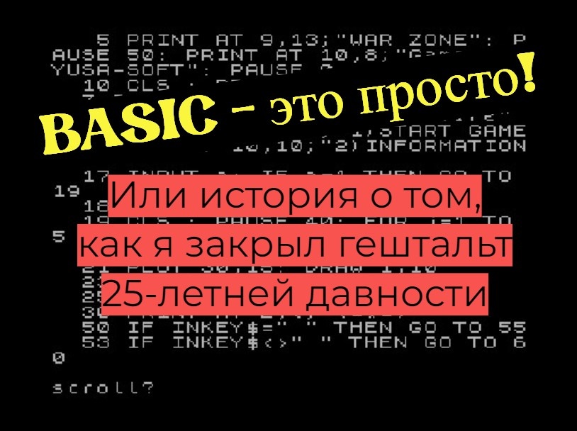 Сразу скажу, я не программист, языков толком не знаю, только самые-самые минимальные знания. Ранее я показывал вам свои детские творческие потуги в программировании на ZX-Spectrum. В основном, - это была смена цвета бордюра, какие-то калькуляторы, и просто вывод какого-то текста на экран. Наставников в этом деле у меня не было, книжек особо тоже, так что изучал все это, как-то так. Переписывал программы из радиолюбительских журналов, рисовал им картинки, немного дорабатывал (делал менюшки и прочие украшательства), так немного и начинал что-то понимать. В общем, в какой-то момент, у меня возникло желание написать что-то самому, игровое. Насколько помню, основных проектов в голове было два: