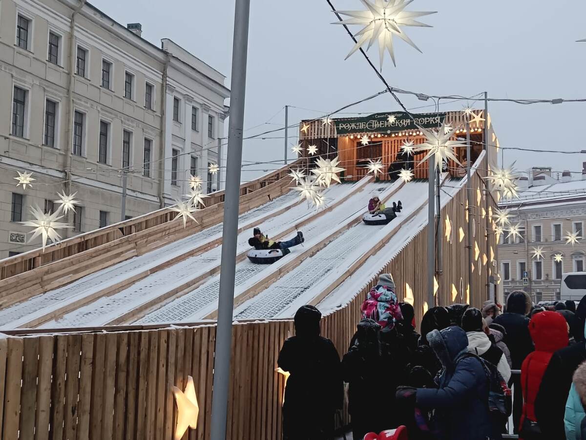 Рождественская горка на Дворцовой площади уже заработала! Бесплатное развлечение для петербуржцев и гостей города.