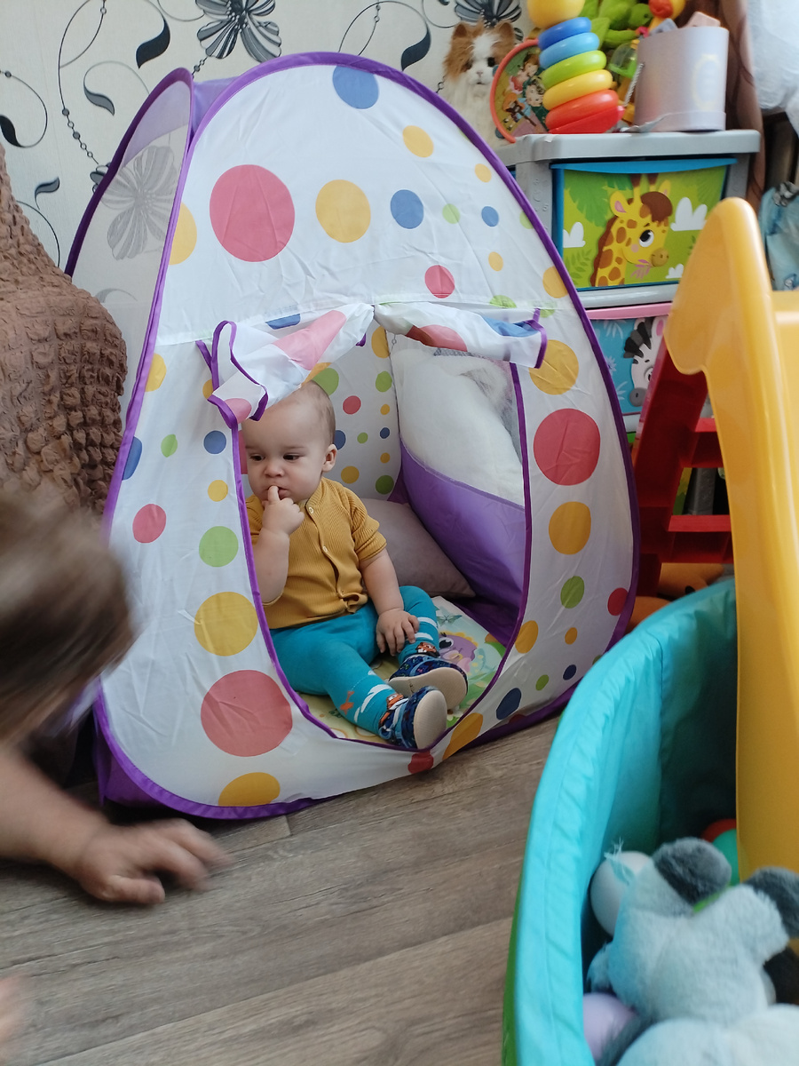 Доброго времени суток! Здоровья, дорогие мои, не болейте. Счастья, мира и добра! Приехала сестра из санатория. Приехала вчера, сегодня с утра уже к нам примчалась, соскучилась. Сева приглядывался несколько минут, изучал, она ли. Или обиделся, что не была долго, решил выдержать паузу. Потом заулыбался, пошел к ней на руки. Посидел немножко и пустился в бега. Столько дел, столько дел, некогда на ручках сидеть и телячьи нежности проявлять. Но потом много времени провел с сестрой. Даже в палатку зашёл, чего не делал. И играл с сестрой в прятки. Амелия сразу на руки пошла к сестре, обняла ее крепко, легла на плечо и держала в объятиях долго. Соскучилась, обрадовалась. Весь день играла с ней и норовила на ручки к ней забраться. Амелия последние дни очень полюбила машины. Научилась их тоже катать, как Сева. Теперь они вдвоем по полу рассекают, катают. Вывезли из гаража все машины, какие есть и разглядывают, у кого круче. Сева, конечно, как опытный водитель, показал Амельке с дельным видом, к