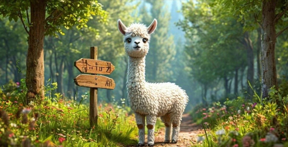 И еще измывательская подпись: "вот такой фотореалистичный постер с альпакой получился", кроме того, что в запросе белый и пушистый указан. Я хулиганствую, спрашиваю: "а где указатель пути?" Ответ: